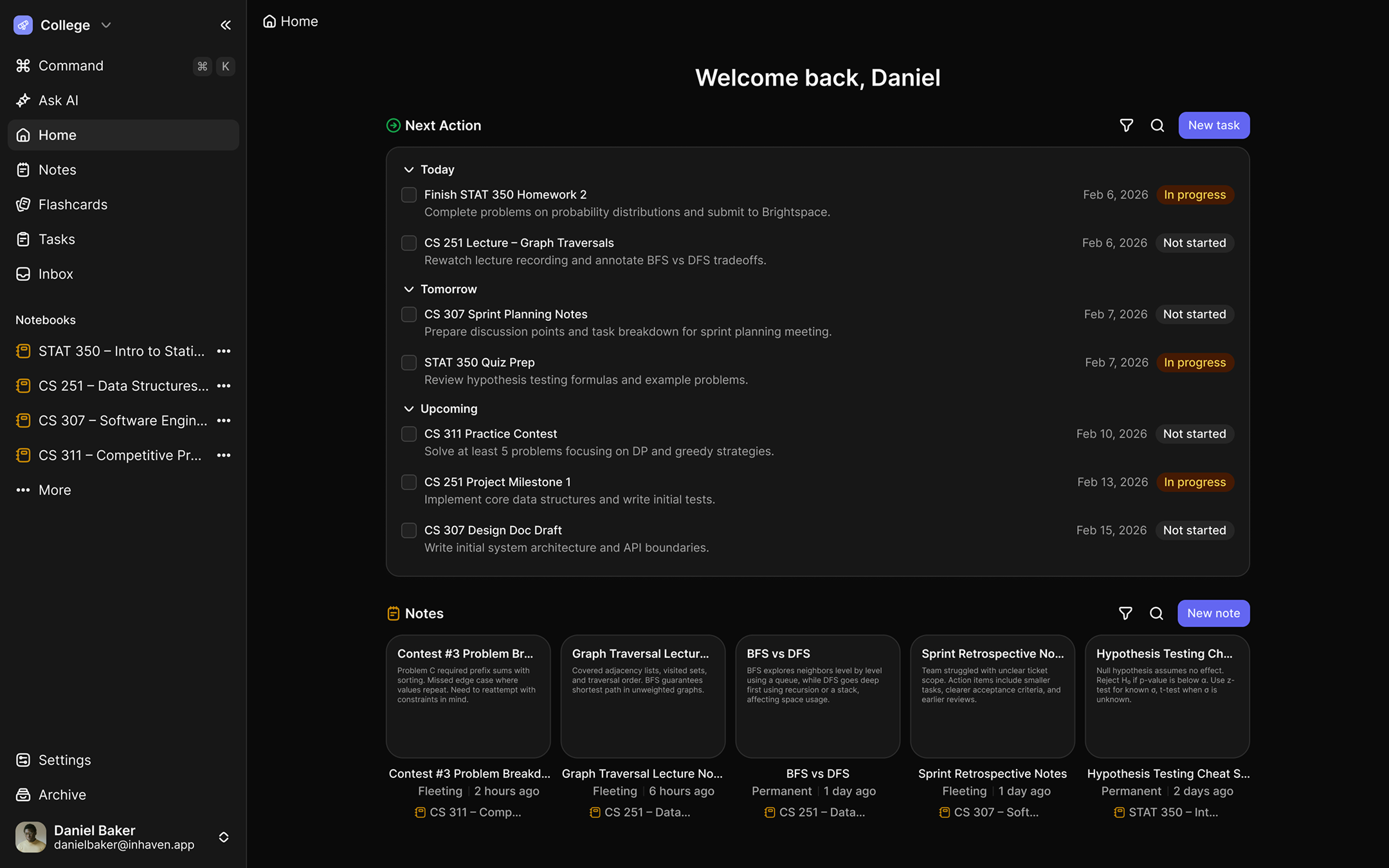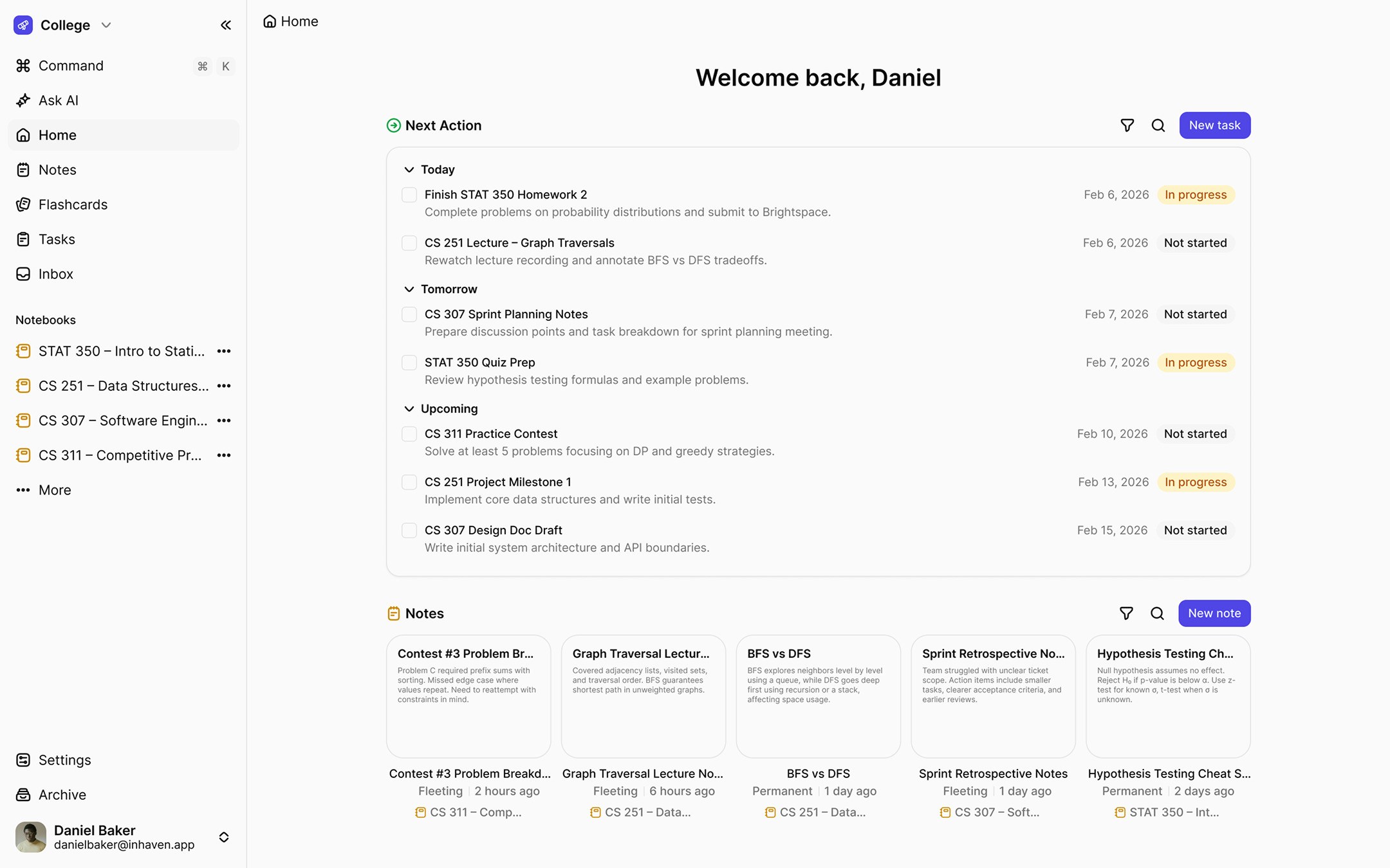 All your notes, tasks, and study tools — in one streamlined workspace.